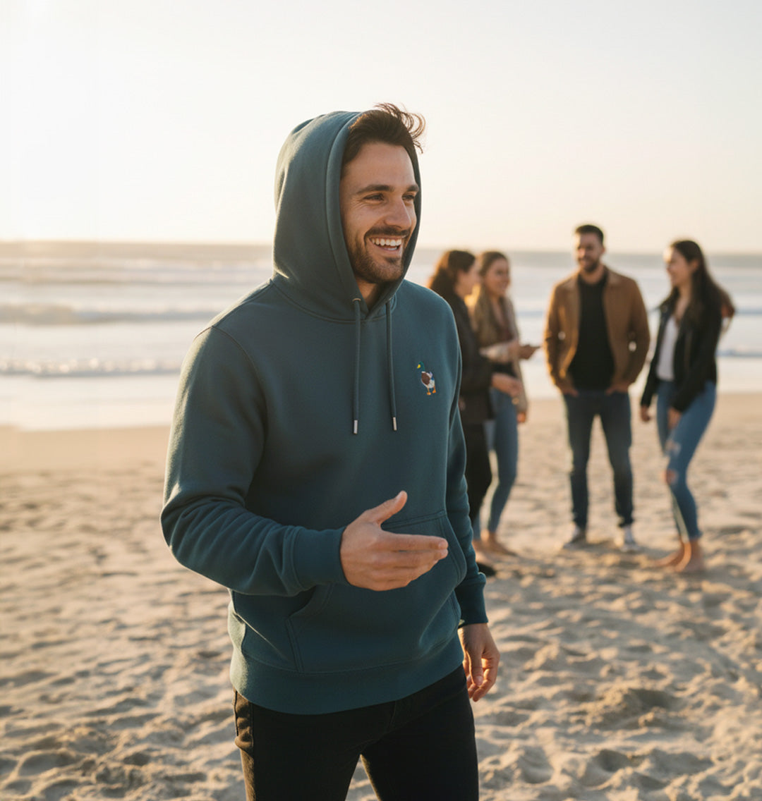 Our eco-friendly sweatshirts & hoodies are made from 85% organic cotton & 15% recycled polyester.