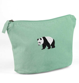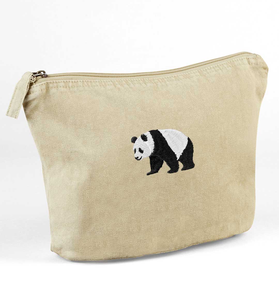 This gorgeous Giant Panda embroidered cotton accessory pouch is the perfect bag for all your daily essentials! Crafted from recycled cotton & embroidered to-order, this pouch features a cute panda motif that is sure to turn heads. Keep your accessories stylishly organised while making a statement with this unique and eco-friendly pouch!