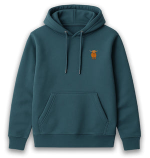 Gorgeous Highland Cow embroidered sustainable hoodie - support wildlife conservation when you purchase this super soft & cosy hooded jumper 🐮.