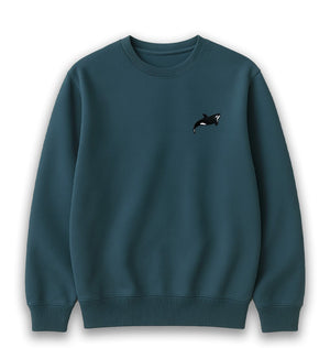 Love the orcas, stay warm and protect the planet with this sustainable sweatshirt embroidered with a beautiful little orca.