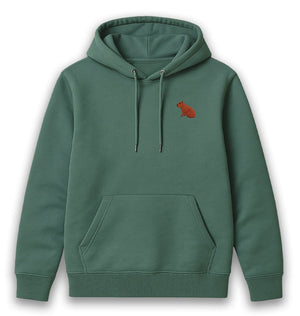 Lovable capybara embroidered hoodie for all capybara fans. This hoodie helps to save Rainforest Wildlife. For every sale of this item, 15% of the profits will be donated to the Rainforest Trust UK 💚
